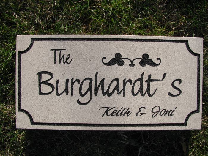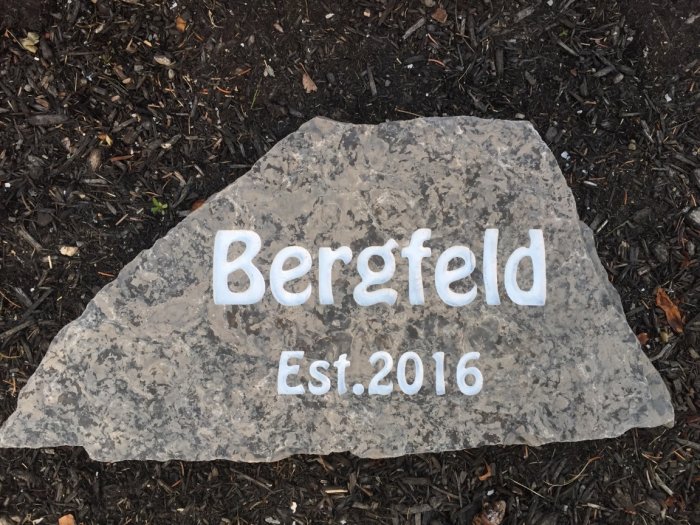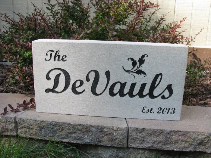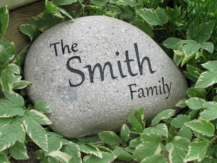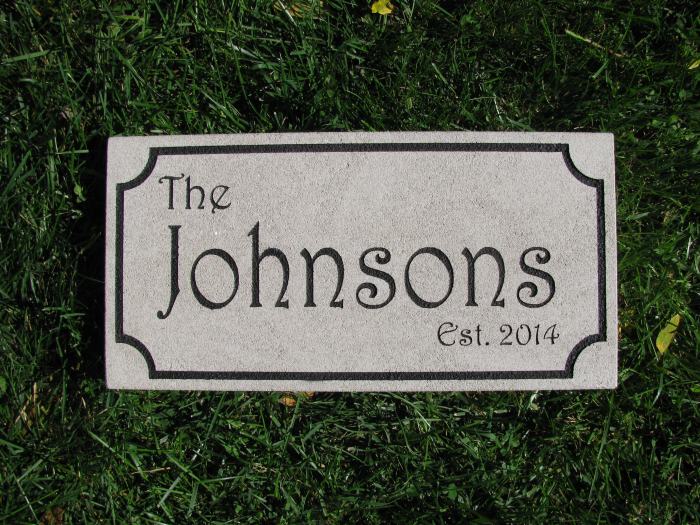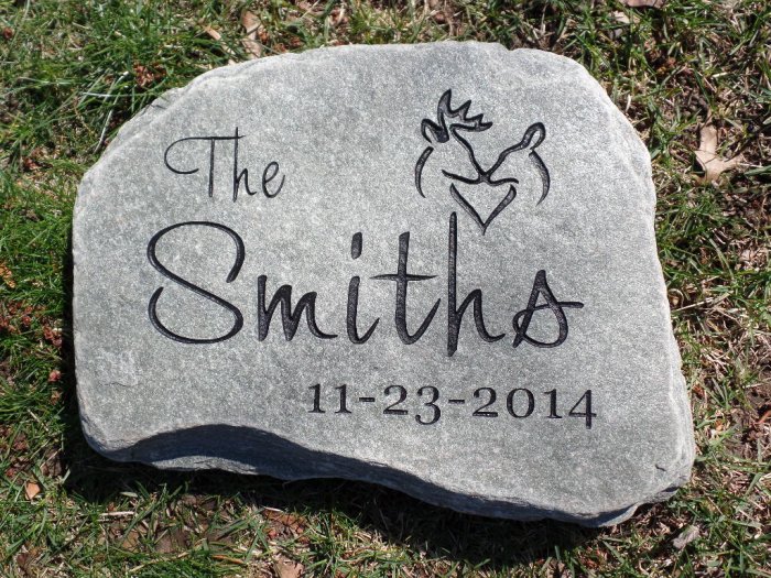 new bride and groom a stone engraved with their name and wedding